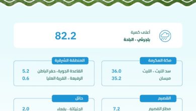 الباحة- أحوال – عبدالرحمن الزهراني : سجّلت منطقة الباحة أعلى معدل كميات لهطول الأمطار بـ(82.2) ملم في بلجرشي، وذلك ضمن (7) مناطق بالمملكة، شهدت كميات متفرقة من الأمطار، فيما سجلت…