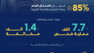 أحوال – حج – محمد صالح الزهراني عبر حساب الهيئة العامة للنقل @Saudi_TGA على الشبكة العنكبوتية “تويتر مايوضح أن أكثر من 9 آلاف عملية فحص رقابية بمنطقتي مكة المكرمة والمدينة…