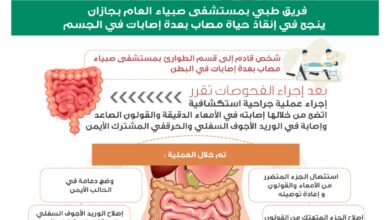 أحوال – جـازان – عائشة طاهر: تمكن فريق الجراحة العامة والأوعية الدموية والمسالك البولية بمستشفى صبياء العام من إنقاذ حياة مصاب بعدة إصابات في البطن. وفي التفاصيل أوضحت الصحة في…