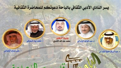 أحوال – الباحة – عبدالرحمن الزهراني : ضمن فعاليات صيف الباحة يقيم النادي الأدبي الثقافي في منطقة الباحة غدا الخميس ٦ محرم ١٤٤٤هـ – ٤ / ٨ /٢٠٢٢م بقاعة الشيخ…