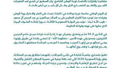 أحوال – محمد صالح الزهراني في ذكرى يومنا الوطني الـ 94 أرفع أسمى آيات التهاني لمقام خادم الحرمين الشريفين الملك سلمان بن عبد العزيز آل سعود، ولسمو ولي عهده الأمين…