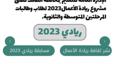أحوال – الطائف – نوال مسلم: أطلقت الإدارة العامة للتعليم بمحافظة الطائف مشروع ريادة الأعمال “ريادي 1445هـ” , الذي يستهدف طلاب وطالبات المرحلتين المتوسطة والثانوية في المدارس الحكومية والأهلية؛ لتعزيز…
