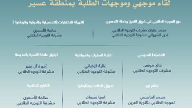 أحوال- عسير- معدي آل حيه : برعاية مدير عام التعليم بمنطقة عسير الأستاذ فهد بن صالح عقالا عقدت إدارة التوجيه الطلابي بالإدارة العامة للتعليم بمنطقة عسير اليوم الثلاثاء ٢٤ شوال…
