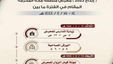 أحوال – مكة – منصور نظام الدين : تنظم الإدارة العامة للتعليم بمنطقة مكة المكرمة ممثلاً في إدارتي الموهوبين والموهوبات، غدًا الثلاثاء 14 / 4 / 1444هـ ،معرض الأولمبياد الوطني…