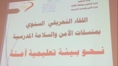 أحوال – متابعات : عقدت إدارة الأمن والسلامة المدرسية اللقاء التعريفي السنوي لمنسقات الأمن والسلامة بالمدارس التابعة لمكاتب التعليم الداخلية والخارجية، تحت عنوان ( نحو بيئة تعليمية آمنة ) بمسرح…