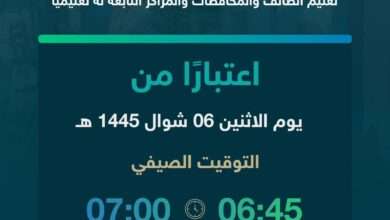 أحوال – الطائف – متابعات : أقرت الإدارة العامة للتعليم بالطائف بدء تطبيق الدوام الصيفي يوم الاثنين 6 شوال 1445هـ . وأوضح المدير العام للتعليم بالطائف الدكتور سعيد بن عبدالله…