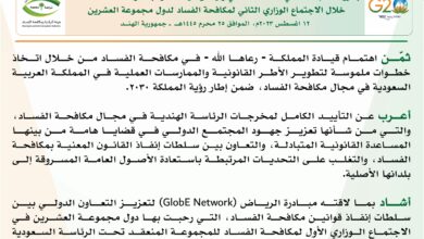 كلمة المملكة خلال الاجتماع الوزاري الثاني لمكافحة الفساد
