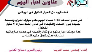 أحوال – الرياض – محمد الشريف : في تمام الساعة 5:45 مساء اليوم تقام مباراة أخرى وملحمه جديدة بين الإتحاد والفيحاء في كأس الملك مباراه لا تقبل التعادل، كما عودتنا…
