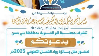 أحوال – الباحة – محمـد قـرهـم : برعاية كريمة من صاحب السمو الملكي الأمير الدكتور : حسام بن سعود بن عبدالعزيز أمير منطقة الباحة وبحضور محافظ بني حسن سعادة الأستاذ…