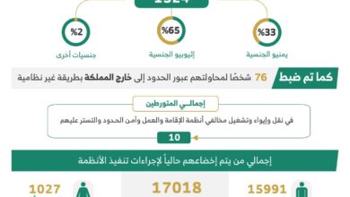 أحوال – محمد صالح الزهراني خلال أسبوع.. ضبط 11657 مخالفًا لأنظمة الإقامة والعمل وأمن الحدود حيث أسفرت الحملات الميدانية المشتركة لمتابعة وضبط مخالفي أنظمة الإقامة والعمل وأمن الحدود، التي…