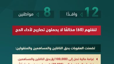 أحوال – محمد صالح الزهراني وزارة الداخلية تصدر قرارات إدارية بحق(20)مخالفًا لأنظمة وتعليمات الحج لنقلهم(60)مخالفًا لا يحملون تصاريح لأداء الحج أعلنت وزارة الداخلية عبر موقعها على الشبكة العنكبوتية “إكس” عن…