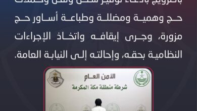أحوال – بدر صالح الكناني: شرطة محافظة جدة تقبض على مقيم من الجنسية الباكستانية لنصبه واحتياله بالترويج بادعاء توفير سكن ونقل وحملات حج وهمية ومضللة وطباعة أساور حج مزورة. تم…