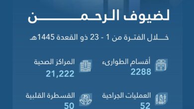 أحوال – متابعات تلقى أكثر من 23,510 حجاج خدمات الرعاية الطبية في المنشآت والمراكز الصحية الموسمية في المدينة المنورة خلال الفترة من 1 – 23 ذي القعدة الجاري، ضمن الخدمات…