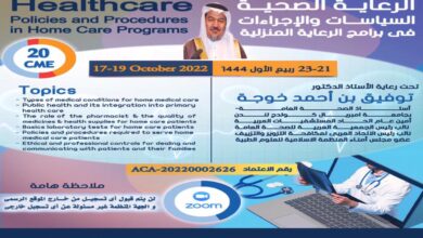 أحوال – جدة – منصور نظام الدين : برعاية أمين عام إتحاد المستشفيات العربية أستاذ واستشاري طب الأسرة والمجتمع البروفيسور توفيق أحمد خوجة تنطلق يوم غد الإثنين الحادي والعشرين من…