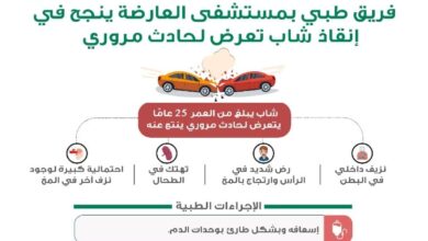 مستشفى العارضة ينجح في إنقاذ شاب تعرض لحادث مروري