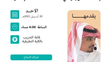احوال – حفر الباطن -غميص الظهيري: يدعوكم لحضور ورشة عمل بعنوان إعداد محتوى رقمي هادف للمنصات الإعلامية. للمحاضر الأستاذ حماد الحربي يوم الأحد ٢٠ ابريل٢٠٢٥م بقاعة التدريب. بالكلية التطبيقية…