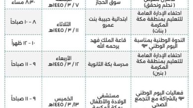 أحوال – مكة المكرمة- نوال مسلم يشارك أكثر 400 ألف طالب وطالبة و35 ألف من الهيئتين التعليمية والادارية في احتفال الإدارة العامة للتعليم بمنطقة مكة المكرمة باليوم الوطني السعودي في…