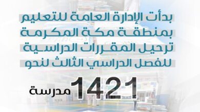 تعليم منطقة مكة يبدأ ترحيل المقررات الدراسية للفصل الثالث لنحو 1421 مدرسة