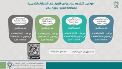 أحوال – عسير- يوسف حسين أبو ملحة: أعلنت الكلية التقنية بأبها ، فتح باب القبول والتسجيل للراغبين في التقديم على برامج البكالوريوس والدبلوم بالكلية لخريجي الثانوية العامة أو ما يعادلها،…