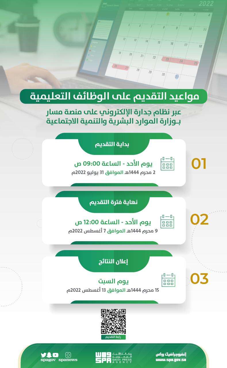 أحوال- القنفذة- ريحانة الزهراني: وزارة التعليم تعلن بداية التقديم على 11547 وظيفة تعليمية بنظام التعاقد الرسمي وفقاً للائحة التنفيذية للموارد البشرية في الخدمة المدنية بداية التقديم على الوظائف التعليمية يوم…