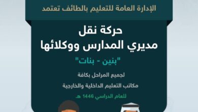 تعليم الطائف يعلن حركة نقل مديري المدارس ووكلائها لعام 1445 هـ