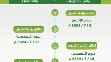 أحوال – بدر صالح الكناني: تبدأ جامعة الملك فيصل غداً القبول الإلكتروني للطلاب والطالبات في مرحلتي البكالوريوس والدبلوم (الانتظام) للعام الجامعي 1446هـ، ويستمر حتى يوم الأحد المقبل 24 ذو الحجة…