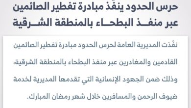 أحوال – عبد الله صالح الكناني نفّذت المديرية العامة لحرس الحدود مبادرة إنسانية لتفطير الصائمين في منفذ البطحاء بالمنطقة الشرقية، ضمن المبادرات الاجتماعية التي تحرص الجهات الأمنية على تقديمها خلال…