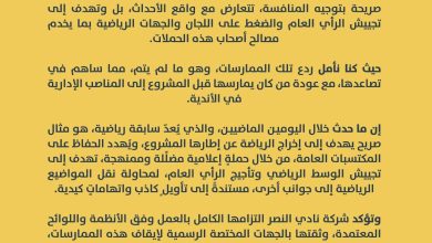 النصر يواجه الحملات الممنهجة ببيان حازم