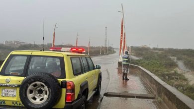 أمطار غزيرة والدفاع المدني يحذر من مخاطر السيول