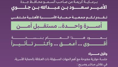 أحوال – جدة – إبتسام عشان برعاية كريمة من صاحب السمو محافظ جدة، و في إطار جهودها المتواصلة لتعزيز الحماية الأسرية وترسيخ مفاهيم الوقاية من الإيذاء والعنف الأسري، تنظم جمعية…