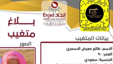 أحوال – مكة المكرمة – غميص الظهيري : بحمد الله وتوفيقه تم العثور على مفقود مخطط ولي العهد السكاني عصر اليوم الاثنين ٣/١٣/ ١٤٤٦هـ والذي فقد من يوم الجمعة ١٠…