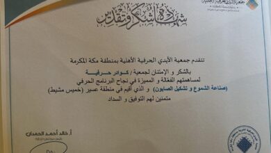احوال – عسير – خالد الشهراني اختُتمت صباح يوم الخميس الموافق 2 ذو الحجة 1446هـ (29 مايو 2025م)، فعاليات الدورة التدريبية “صناعة الشموع وتشكيل الصابون” التي أقامتها جمعية كوادر حرفية…
