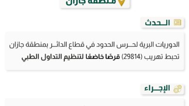 أحوال – محمد صالح الزهراني أحبطت الدوريات البرية لحرس الحدود في قطاع الدائر بمنطقة جازان تهريب (29814) قرصًا خاضعًا لتنظيم التداول الطبي، وجرى استكمال الإجراءات النظامية الأولية، وتسليم المضبوطات لجهة…