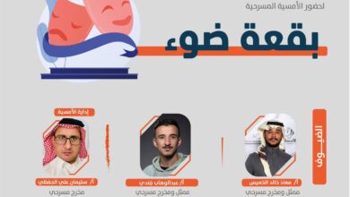أحوال – عسير – فاطمة الاسمري تنظم جمعية الثقافة والفنون بأبها مساء غد الأربعاء أمسية مسرحية بعنوان ” بقعة ضوء” يتحدث فيها المسرحيين عبدالوهاب فندي ومعاذ الخميس ويديرها المسرحي سليمان…