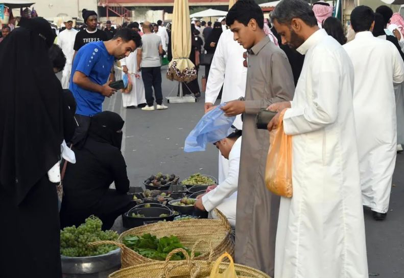 المصطافون يقبلون على معروضات سوق الثلاثاء الشعبي بأبها