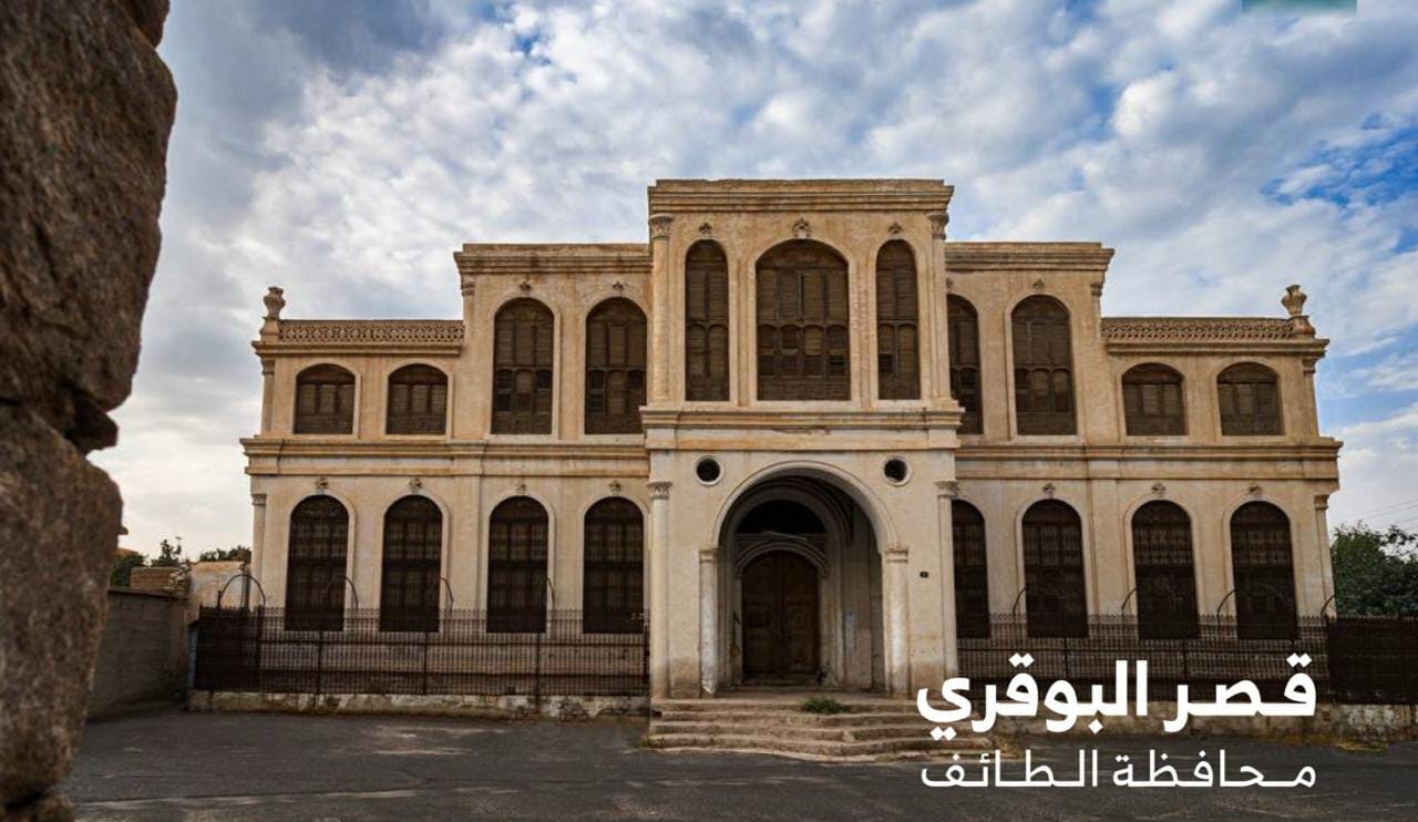 وانتقلت عدسة “واس” إلى قصر البوقري الذي يقع غرب المنطقة المركزية التاريخية بمدينة الطائف بحي قروى في شارع الجيش، حيث بني القصر في بدايات القرن الرابع عشر وتحديداً عام 1348هـ، كما يدل على ذلك نقش كتابي على البوابة الرئيسة للمبنى، ويتكون القصر من دورين على واجهة جنوبية يتوسط بستان يعد من أهم بساتين الطائف، وقد تحلى بكثير من الزخارف الخشبية والرواشين والنوافذ المزخرفة، ويوجد به عدد من الغرف والمجالس ذات مساحات مختلفة مع المرافق العامة.