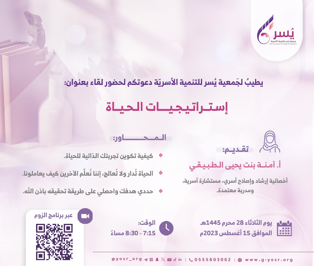 لقاء بعنوان :(إستراتيجيات الحياة)