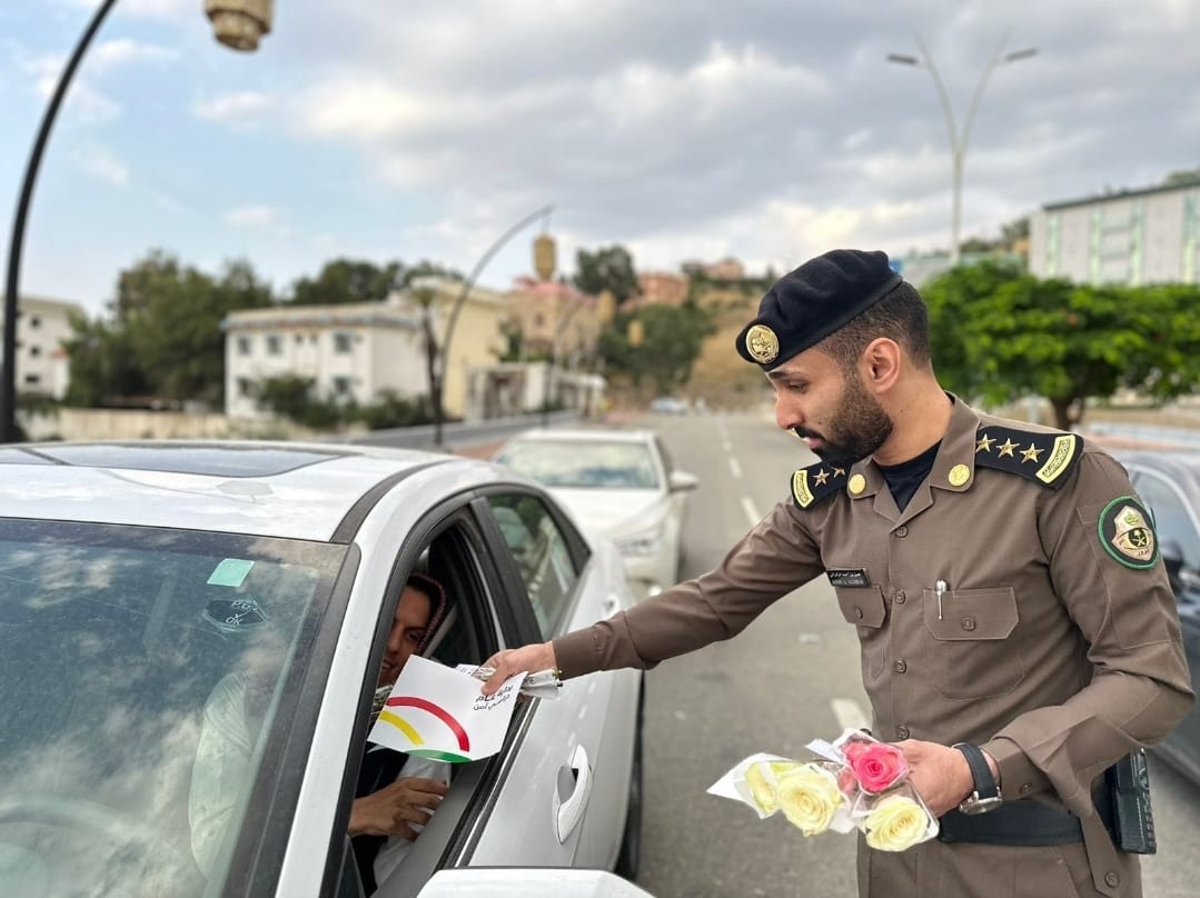 مرور الباحة يستقبل الطلاب بالورد والهدايا في أول أيام الدراسة