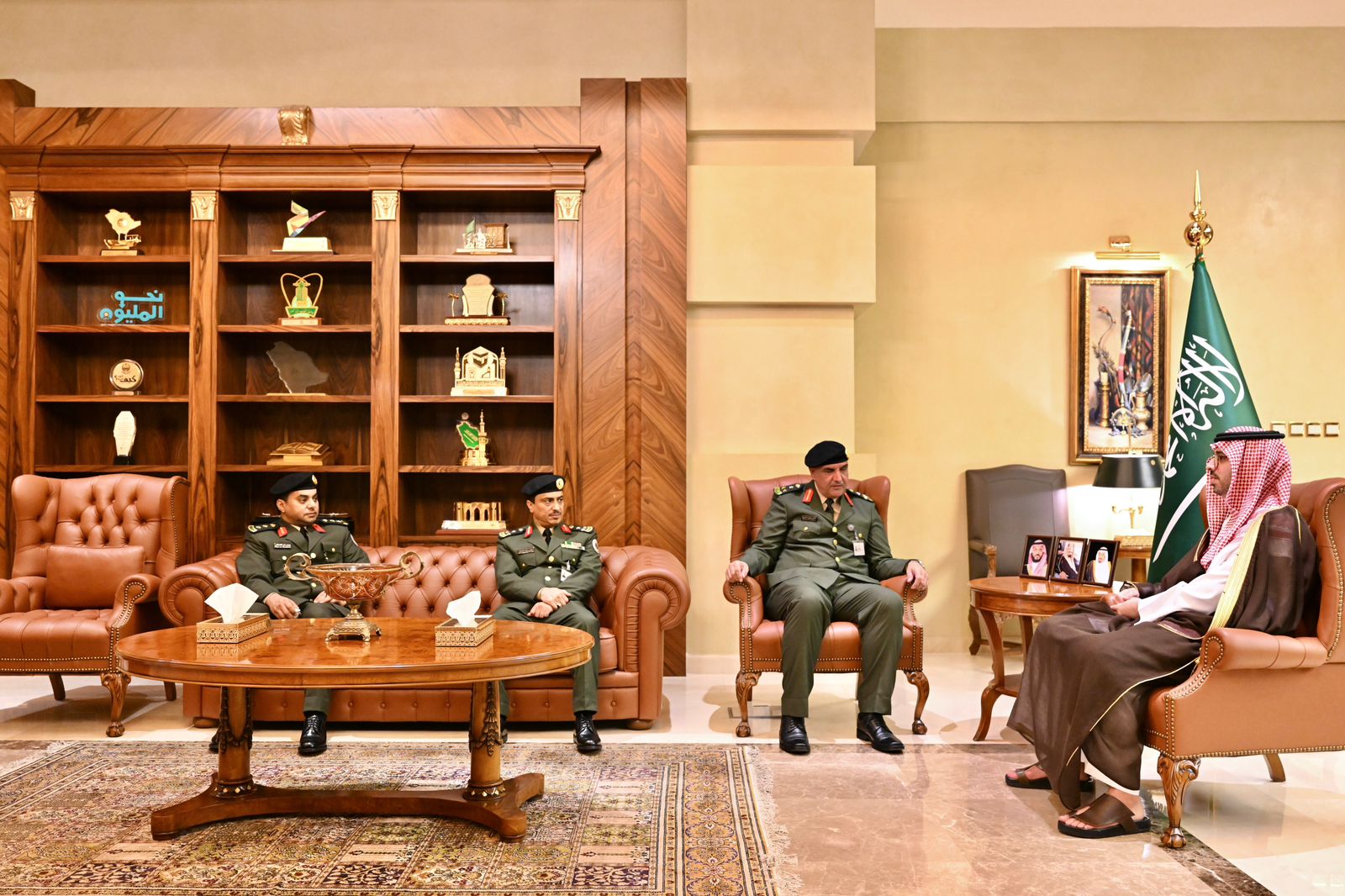 مدير السجون بمنطقة مكة المكرمة المكلف العميد أحمد بن علي القرني , يرافقه مدير الإدارة العامة لسجن جدة العميد خاطر خضران الزهراني , ومدير إدارة الإبعاد بمحافظة جدة العقيد عوض علي القحطاني.وأستمع سموه خلال اللقاء إلى شرح موجز عن الأعمال التطويرية للإصلاحيات والسجون، والخطط المستقبلية للسجون بمحافظة جدة، والبرامج والأنشطة التي تستهدف النزلاء وتسهم في تأهيلهم وتهيئتهم ليكونوا أفراداً فاعلين في المجتمع بعد الإفراج عنهم .