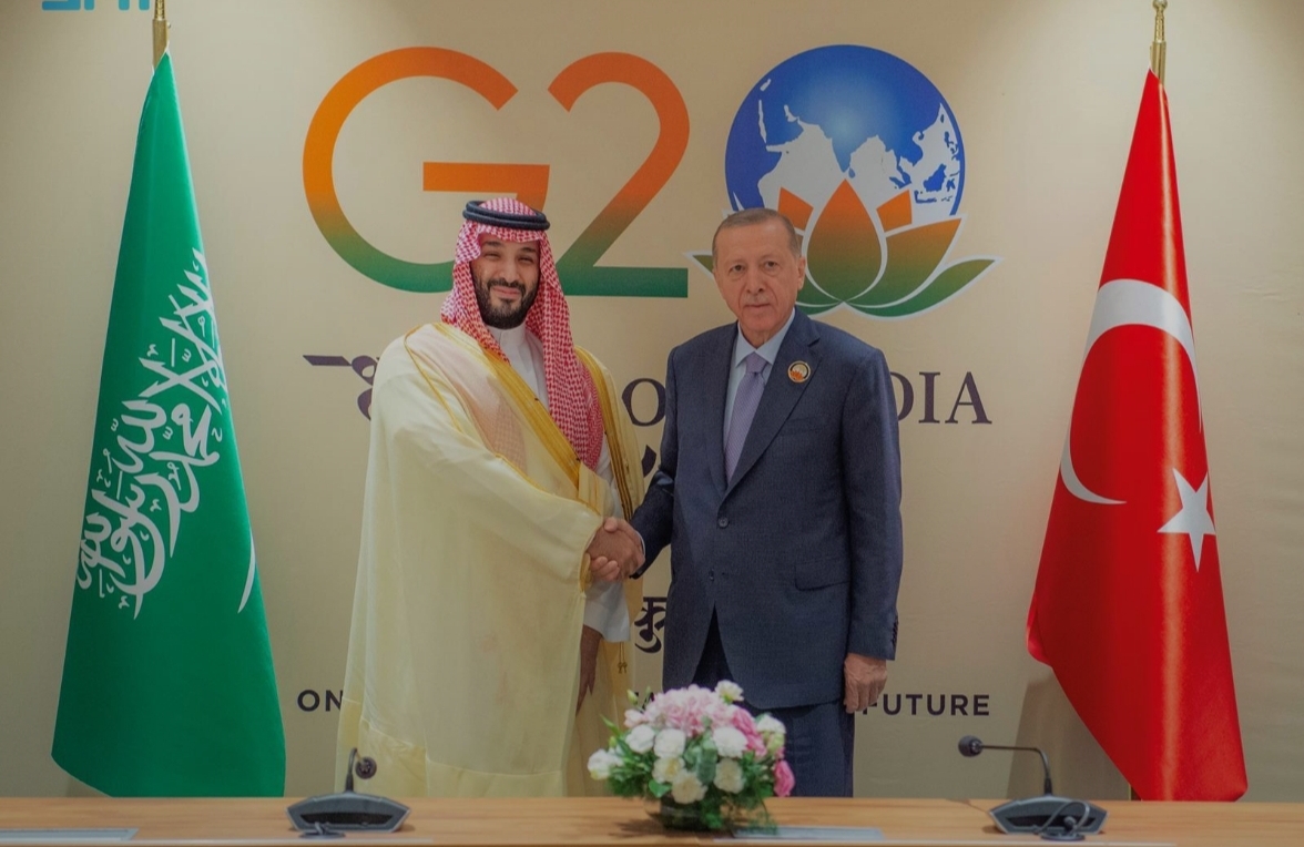 اجتمع صاحب السمو الملكي الأمير محمد بن سلمان بن عبد العزيز آل سعود، ولي العهد رئيس مجلس الوزراء رئيس وفد المملكة المشارك في قمة قادة دول مجموعة العشرين، في مدينة نيودلهي بجمهورية الهند، اليوم، مع فخامة الرئيس رجب طيب أردوغان، رئيس الجمهورية التركية.