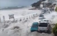 وعلى رصيف ميناء، كان السكان يراقبون الأمواج العاتية التي تتكسر على منارة، ومن بينهم يوري راي الذي قال: “على المرء رؤية ذلك بأم العين مرة واحدة على الأقل في حياته”.