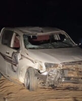 لحادث انقلاب ظهر يوم الاثنين الماضي أثر السرعة الزايدة مما ادى إلى تلف السيارة