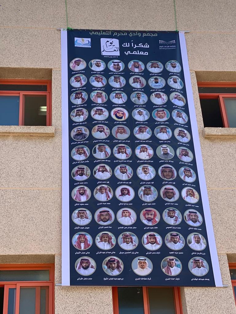 وضع مجمع وادي محرم التعليمي بتعليم الطائف ، صور المعلمين واسمائهم في لوحة شرفية على واجهة مبنى المجمع تقديرا وتكريما لهم وتأكيدًا لمكانة المعلم والدور الرائد الذي يقوم به، والرسالة السامية التي يقدّمها وذلك بمناسبة اليوم العالمي للمعلم