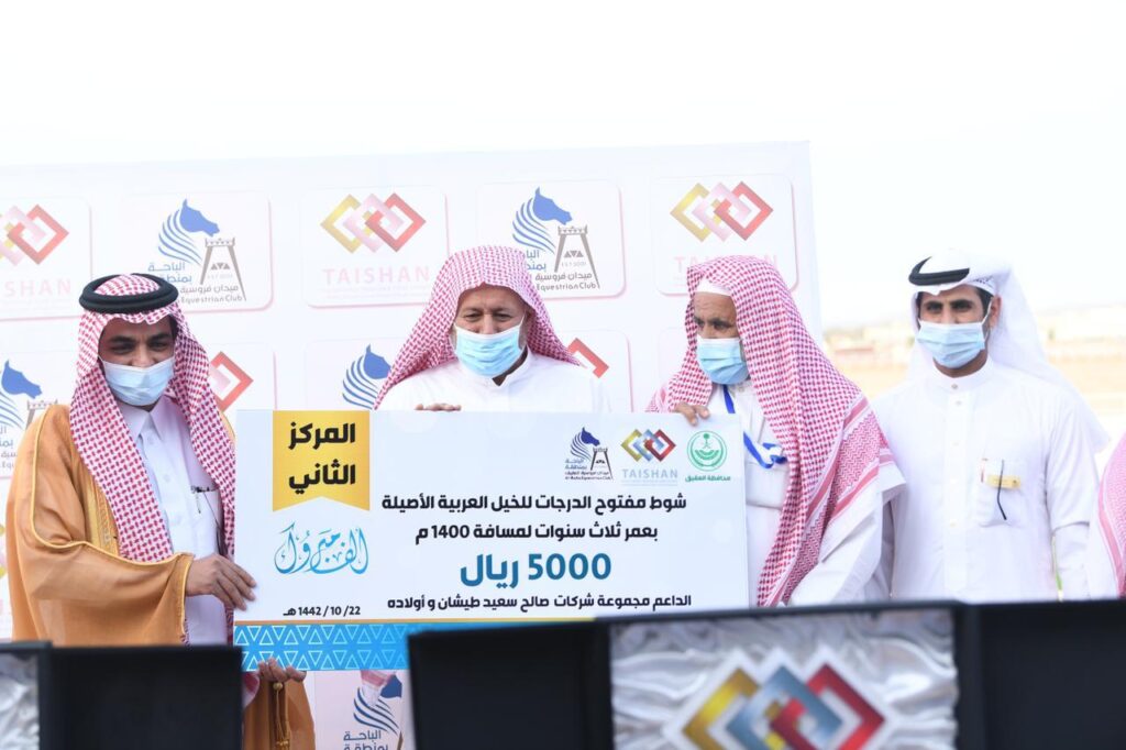 وفي ختام السباق كرّم سعادة محافظ العقيق الأستاذ سالم بن مسير بن طواله ورجل الأعمال الشيخ سعيد بن صالح بن طيشان الفائزين في المحفل الثاني لسباقات الخيل للعام الحالي.