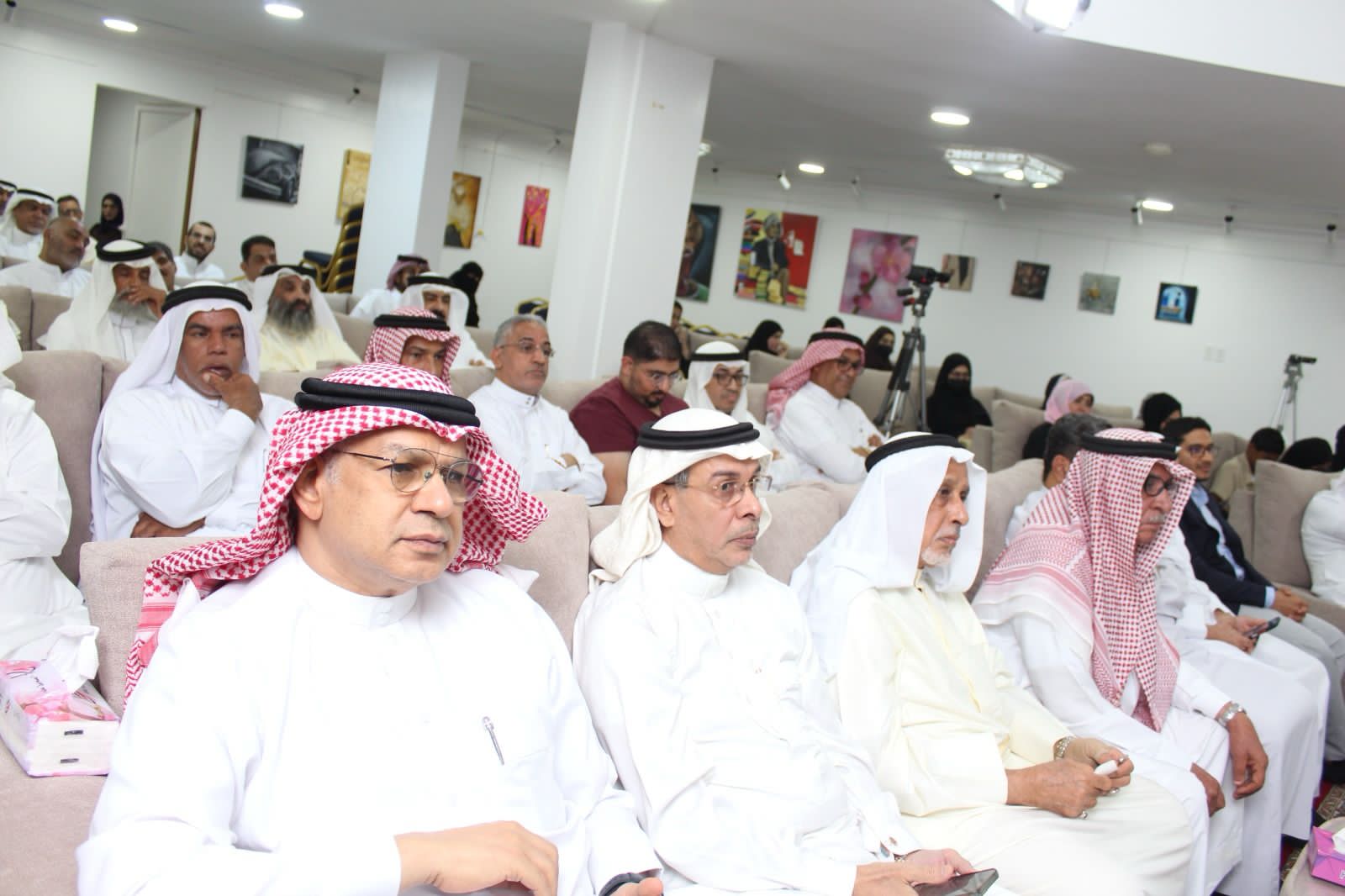 وشارك الفنان زمان جاسم الذي حل كضيف شرف في الندوة بكلمة تناول فيها تطور الفنون في هذه المرحلة مستعرضا تاريخها ومشيدا بالتحولات الفنية الكبرى التي تشهدها الساحة الثقافية. كما شملت فعاليات اللقاء عرضا لفيلم قصير حول مهرجان “النهام” الذي نظمته مؤخرا هيئة المسرح والفنون الأدائية، ومعرضا فنيا للأستاذ حسن التريكي، وتكريما للفوتوغرافي هشام الأحمد، وتم عرض وتوقيع كتاب “ليلة قمرية” للروائية العنود الرشيدي.