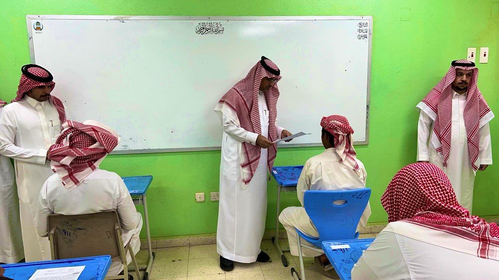 والتقى بمديري المدارس ومشرف وحدة أم الدوم بحضور مدير مكتب التعليم بالمويه ، كما تجوّل الدكتور الغامدي داخل قاعات الاختبارات ولجان المتابعة والتصحيح والرصد ومرافق المدرسة وتجهيزاتها، مستمعًا لأهم الملاحظات وآلية انتظام سير الاختبارات.