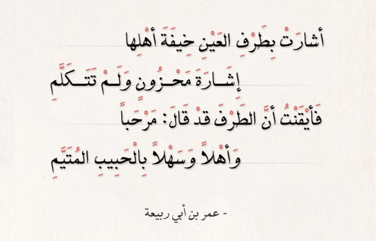 إذا جئت فامنح طرف عينيك غيرنا لكي يحسبوا أن الهوى حيث تنظر.