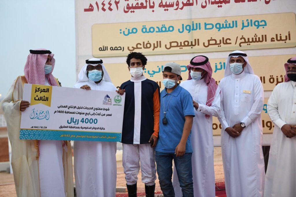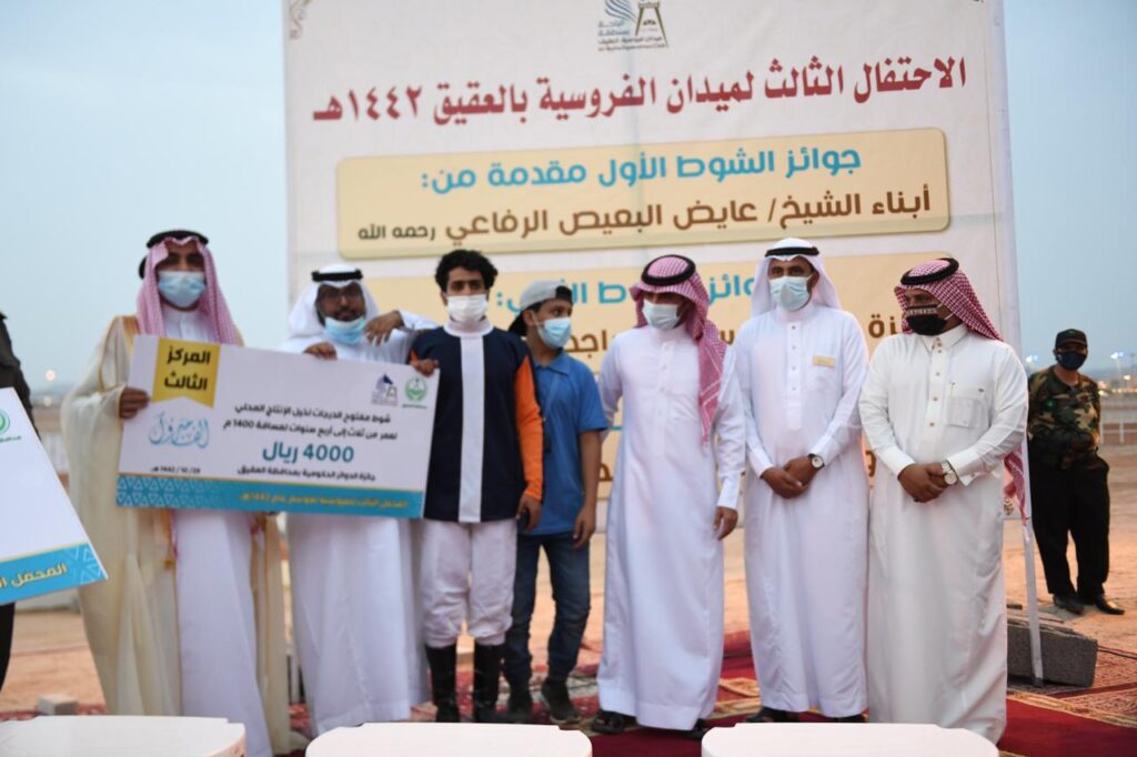 وحقّق الجواد جوهرة سالم، لمالكه إسطبل صهيل الجياد، وقيادة الخيال إياد الطريسي المركز الأول في ثالث أشواط محفل الفروسية الثالث على جائزة الدوائر الحكومية بمحافظة العقيق، لخيل الإنتاج المحلي مفتوح الدرجات بعمر من 3 إلى 4 سنوات لمسافة 1400 متراً, وحقق الجواد فخر العز، لمالكه إسطبل عبدالله النخيل، بقيادة الخيال مشاري المطيري المركز الثاني، فيما حصل على المركز الثالث الجواد لعيون أنس، لمالكه إسطبل صفوة الخيال، وبقيادة الخيال عبدالعزيز الشهراني ، وأتى الجواد ياريس ، لمالكه إسطبل بندر آل حثلين، وبقيادة الخيال مهدي الحبيل في المركز الرابع.