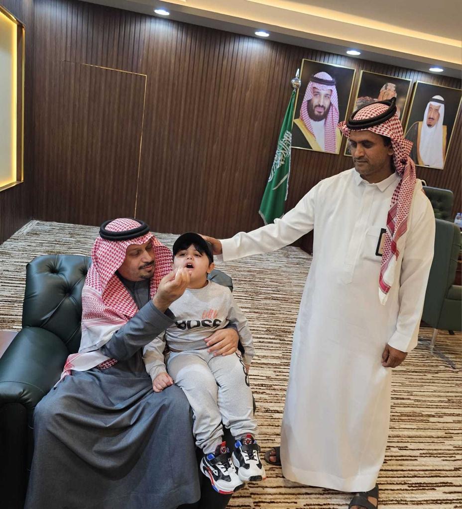 دشن سعادة محافظ محافظة العارضة الاستاذ عبدالله بن محمد الريثي بمكتبه بالمحافظة اليوم، المرحلة الأولى من حملة التطعيم ضد شلل الأطفال التي تنفذها إدارة الرعاية الصحية الأولية بتجمع جازان الصحي بالقطاع الأوسط ، وتستهدف هذه الحملة في مرحلتها الأولى والتي تستمر لمدة أسبوعين الأطفال حتى سن الخامسة
