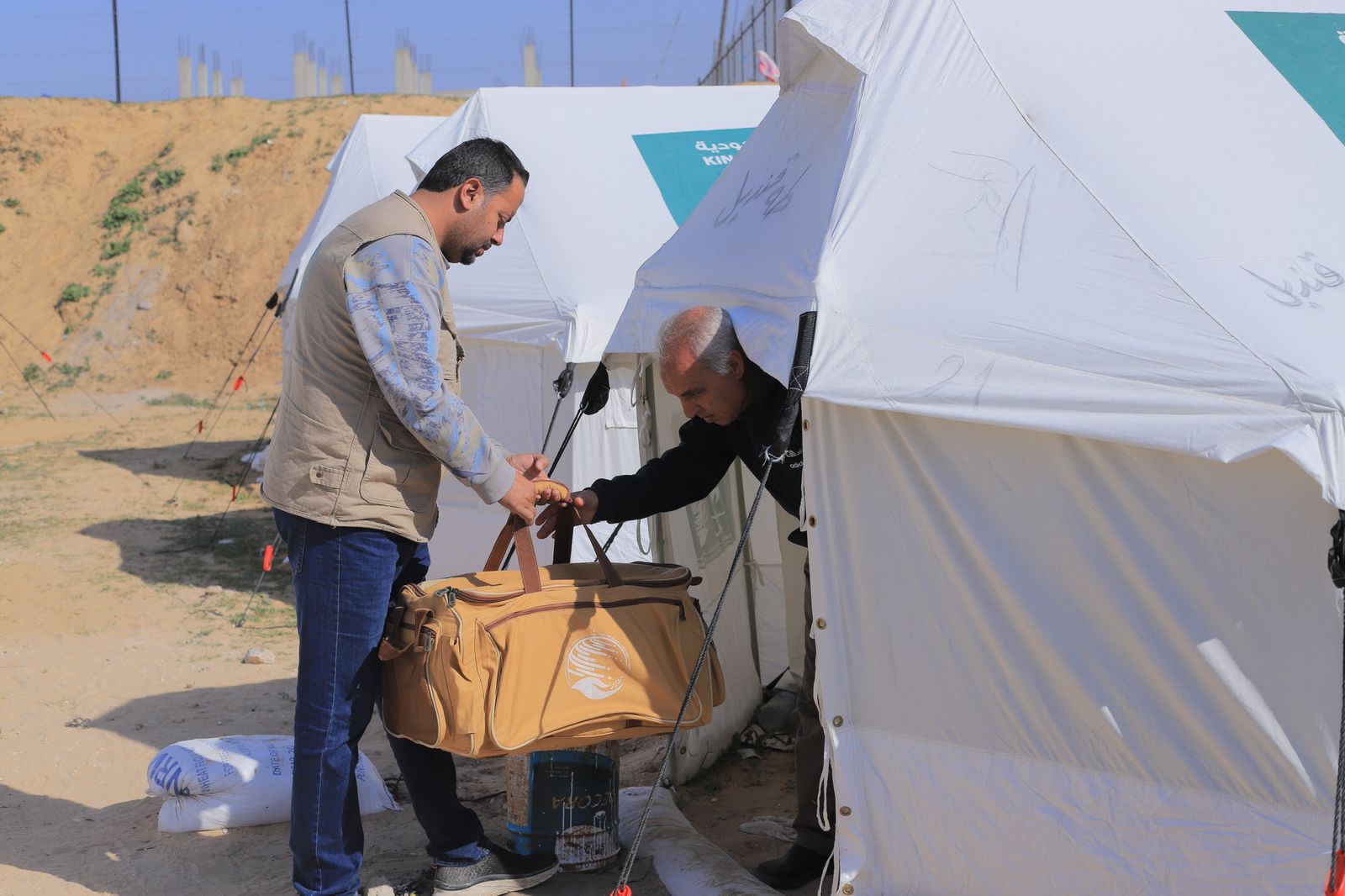 حيث جرى توزيع مساعدات إيوائية في شمال مدينة رفح جنوب قطاع غزة، بهدف تلبية الاحتياجات الضرورية وتخفيف معاناة السكان في عموم القطاع.